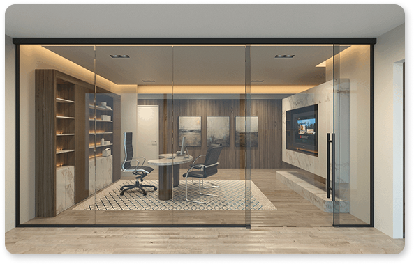 Glass Sliding Door for Room Dividers and Doorways with Fixed Glass
