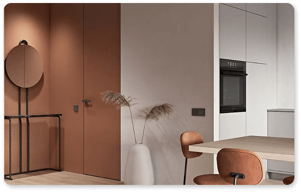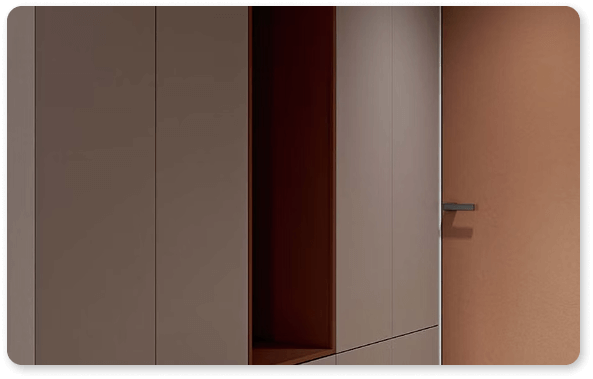 Filomuro doors, referred to as invisible doors, seamlessly blend with the wall, creating a continuous visual flow with only the handle standing out. Line Timber provides a solution for installing hinged doors flush with the wall, featuring an elegant aesthetic and sleek lines. Immerse yourself in visually serene spaces enhanced by advanced technology.