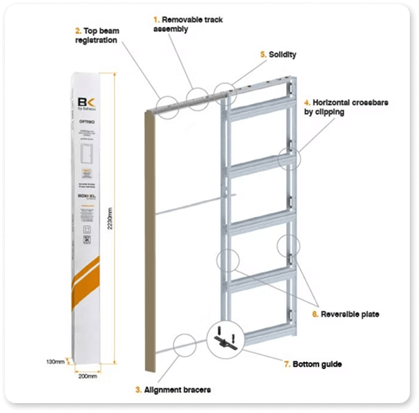 Introducing the Optimo System: an advanced sliding pocket door solution tailored for expansive projects such as condos, apartments, and subdivisions. This system provides optional jambs and soft-close features, offering a complete solution for any space. Its post-construction adaptability ensures flexibility, allowing for easy adjustments and repairs. Packaged into a single, user-friendly box, it simplifies shipping, handling, and organization saving time and money on site. While currently manufactured for the UK door market, availability for other regions can be discussed for large quantities. Contact us for more information.