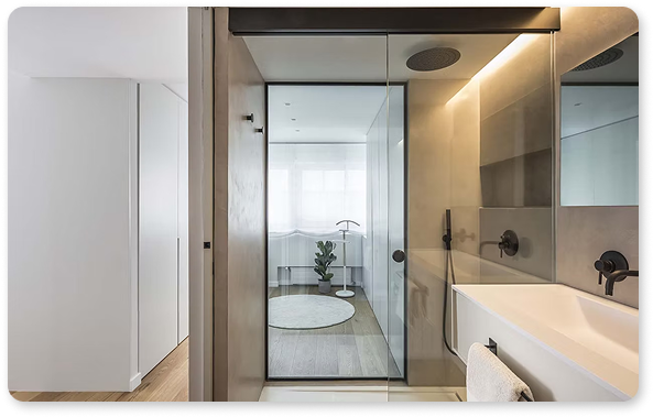 Versatile installation options to suit your layout: whether wall-wall, wall-glass, glass-glass, or angular (90º), we’ve got you covered.
